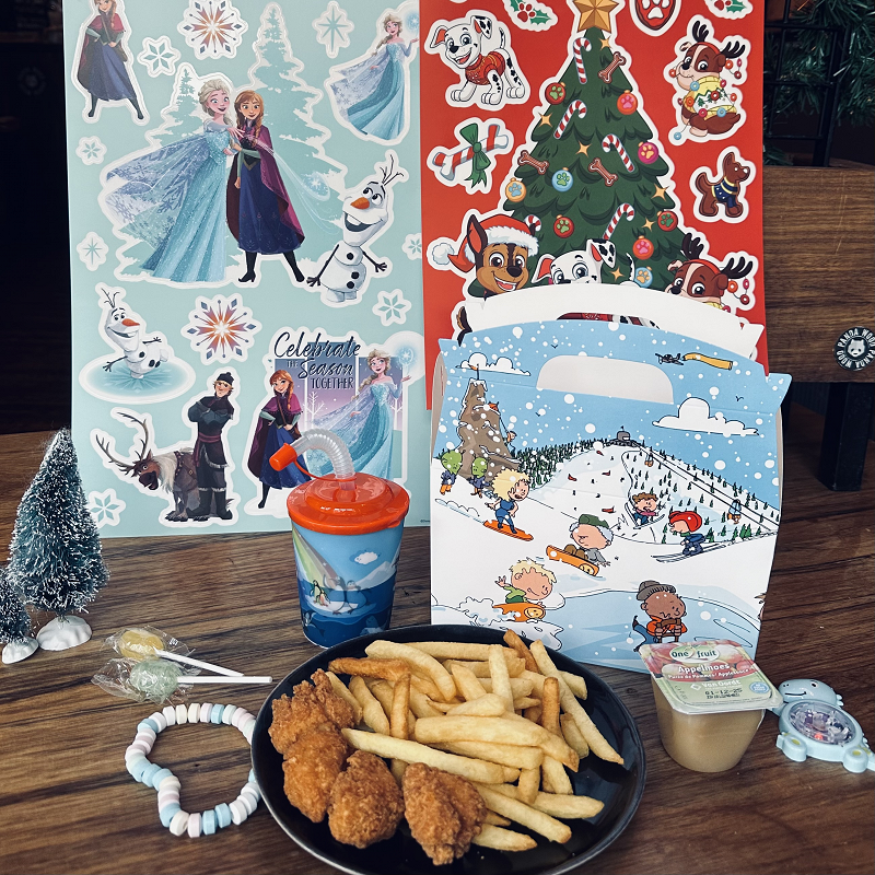 Blije kindergezichtjes met deze leuke Kerstmis kidsbox! Goed gevuld met friet, een kipnuggets, appelmoes, snoepje en nu ook nog een groot stickervel met leuke Kerst-raamstickers.